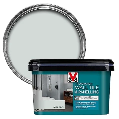 V33 Renovation Wall Tile & Panelling Paint Soft Grey 2L For High Moisture Surfaces Resistance to Temperature Variations Washable Easy Maintenance Resistant Cleaning Products