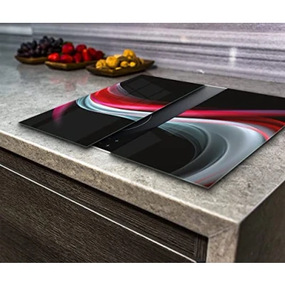 Va Art Glass, Hob Cover Induction Electric Cooker Chopping Board Glass Set 2 Parts, Abstract Waves on The Black Background (2X Wide 30 x Height 52 /cm)