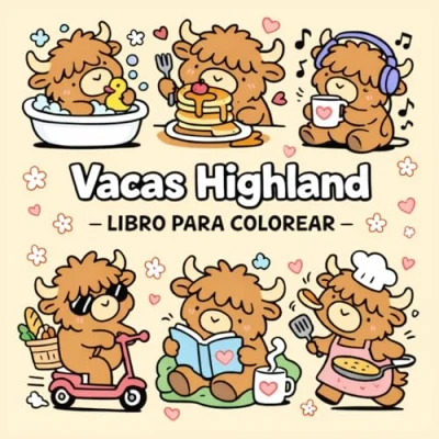Vacas Highland Libro para Colorear: 40 Ilustraciones Adorables de con Diseños Simples Colorear