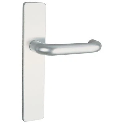 Vachette BERCY Door Handle Set on Plate Key Version I for Landing Doors, Hole Spacing 195 mm Right Hand Installation Easy Anodised Aluminium Silver Finish