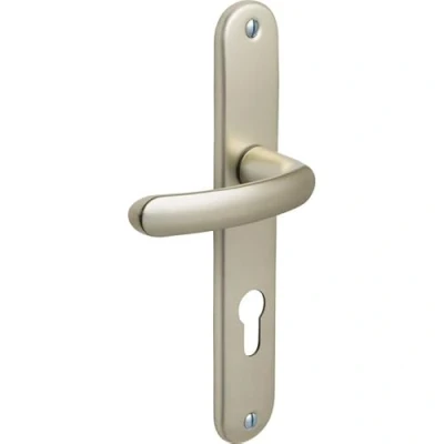 Vachette Door Handle Set on Large Plate Key Version I, Entrance Door, Office, Garage Distance 195 mm Easy Installation System Durable Aluminium Champagne Finish