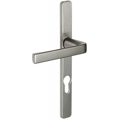 Vachette KAZA Set of Glass Door Handles on Narrow Plate 24 mm Key I for Entrance Door/Cellar/Garden Sheds with Cylinder Hole Spacing 195 Aluminium Silver Finish