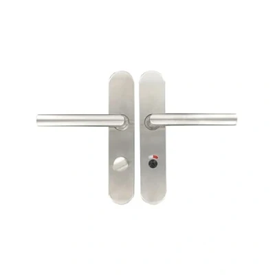 Vachette Linox 493 Angled Door Handle Set on Large Plate Indicator Lock Bathroom and Toilet Distance 195 mm Easy to Install Stainless Steel