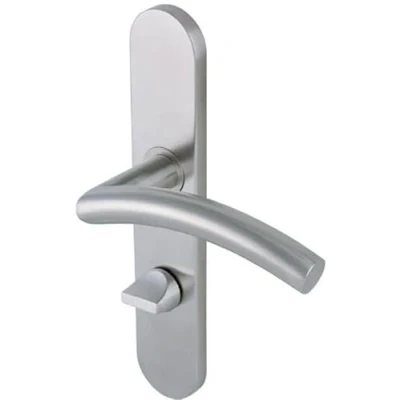 Vachette Linox 494 Door Handle Set on Large Plate Comma Lock Bathroom and Toilet Distance 195 mm Easy to Install Stainless Steel