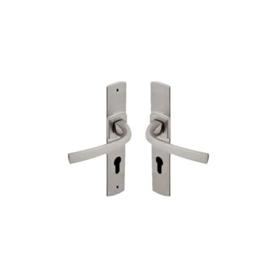 Vachette Muze Door Handle Set on Large Plate Key Version I, Entrance Door, Office, Garage Distance 195 mm Easy Installation System Durable Zamak Platinum Finish