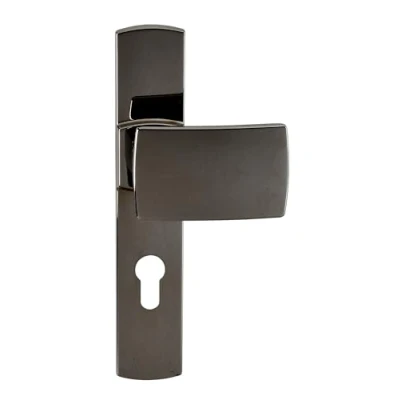 Vachette MUZE Door Handle Set on Plate Key I Version for Landing Doors, Hole Spacing 195 mm Easy Installation Zamak Invisible External Screws Black Diamond Finish