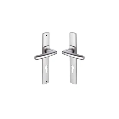 Vachette SCULT Door Handle Set on Plate Key I Version for Landing Doors, Hole Spacing 195 mm Easy to Install Zamak Invisible External Screws Chrome Velvet