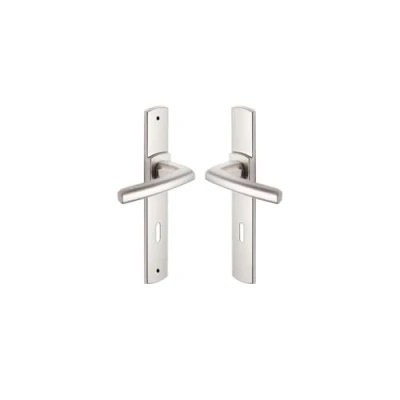 Vachette SCULT Door Handle Set on Plate Key L Version for Bedroom and Office Spacing 195 mm Hole Durable Zamak Material Platinum Finish