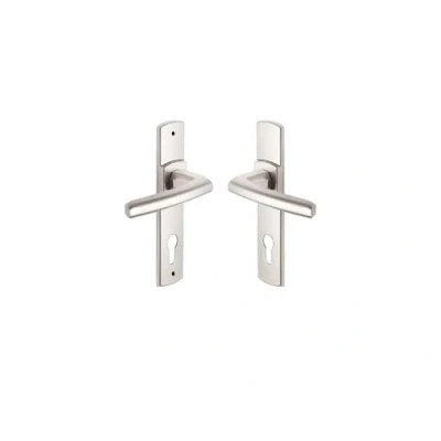 Vachette SCULT Set of Door Handles on Plate Key Version I for Entrance Door/Cellar/Shed Distance 165 mm Durable Zamak Material Platinum Finish
