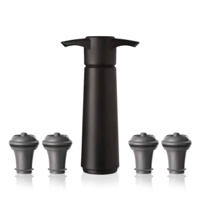 Vacu Vin 0981454 AMS Black Pump with 3 stoppers Wine Saver, Plastic