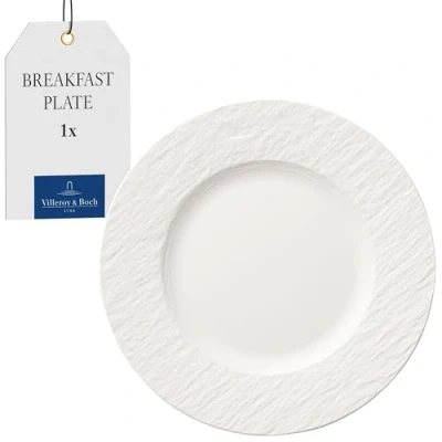 Round breakfast plate in matt-structured slate look, ideal companion for the classic coffee or breakfast table Size is suitable for serving breakfast and desserts, Wide rim for drip-free serving, Complements the Manufacture Rock tableware perfectly Also suitable for gastronomy thanks to its handy shape, stackable inside each other, shock- and impact-resistant edges, optimum size for the dishwasher Dishwasher safe, microwave safe, high quality: Premium porcelain made in Germany Scope of supply: 1x Villeroy & Boch Manufacture Rock Blanc Breakfast Plate (22 cm), Material: Premium Porcelain, Colour: White