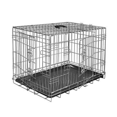 The cage has two access doors. Each of them is equipped with a latch. It is equipped with a carry handle for easy movement The cage will not slip away thanks to its non-slip corners. Plus, it is easy to unfold and takes up little space when folded Installed at home, it will serve as a rest area where he can rest without being disturbed