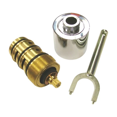 Vado Retrofit Thermostatic Cartridge Assembly. Includes new chrome shroud (housing) and fitting tool. This part replaces the now obsolete Vado CEL-001B-WAX thermostatic cartridge assembly. This cartirdge requires a Vado temperature extension (CEL-001B/EXT-BRA) in order to function correctly. Cartridge Length: 88.58mm (from top of spindle to bottom of wax elementDiameter: 40mm at top 0'ringNumber of O'Rings: 3 Genuine brand new Vado product, covered by a Vado manufacturer's guarantee.