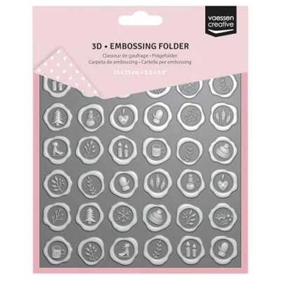 3D DESIGNS - Make a 3D-effect on your Christmas crafts with Vaessen Creative's embossing folder; this tool is perfect for creating detailed, embossed wax seals on cardstock or paper VERSATILE APPLICATION - This embossing folder works effortlessly with paper, cardboard and cardstock, allowing you to use it for all kinds of creative projects — from scrapbook pages to decorations EASY TO USE - Simply place your material in the embossing folder, use it with most standard die-cutting and embossing machines, and effortlessly create a striking 3D figure on your papercraft projects DURABLE QUALITY - Vaessen Creative embossing folders are made from high-quality, durable material and ensure consistent, sharp results even after frequent use SIZE - This embossing folder features wax seals and measures 5.9 x 5.9" (15 x 15 cm), making it perfect for a variety of Christmas crafts, from scrapbooking to card making