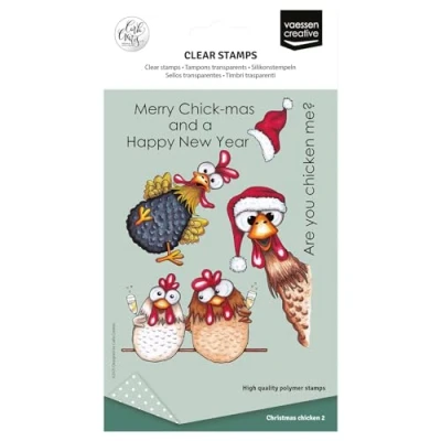 Vaessen Creative Clear 10 Pcs Christmas Chickens Scrapbooking, Card Making Supplies Silicone Crafting for Stamping Platform, A6