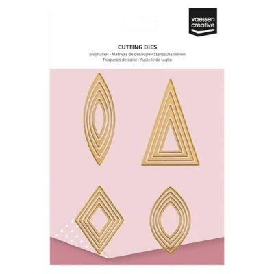 CUTTING DIE – Use this shape die set to make detailed designs that will take all your papercraft projects, from card making to scrapbooking, to the next level CARD MAKING SUPPLIES – Decorate your greeting cards, scrapbook pages, bullet journals and mixed media projects by easily cutting beautiful designs from paper, cardstock and more FOR MINI CUTTING MACHINE – These craft dies are specially designed for small die-cutting machines with a base plate of 3 x 6.3 inches, such as the Cut Easy Mini by Vaessen Creative HIGH QUALITY – These durable cutting dies are made of high-quality metal; they last a long time, even with frequent use, and guarantee accurate and sharp results time after time CONTENTS – This package contains 16 cutting dies to make different shapes, such as a triangle and a diamond; the shape dies, of 0.6 x 1.5 inches to 2 x 2.9 inches, are compatible with most cutting machines