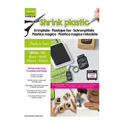 SHRINK ART SHEETS – These shrink film sheets can be can be used to create all kinds of decorative objects. Draw, trace or stamp your design onto the sheet and colour it in. You can also cut out fun shapes using a craft punch SUITABLE FOR ALL AGES – Both children and adults will enjoy the fun and excitement of shrinking handmade projects. Watch the magical shrinking process Shrink art is also a perfect rainy day activity. The sheets are safe to work with as the shrink plastic is non-toxic ARTS AND CRAFTS FUN – Get creative with shrink art Make your own Christmas ornaments, card or scrapbook embellishments, jewellery, keychains, pins and more. You can choose between keeping your project perfectly flat or bending the shrinky sheet into shape to create 3D designs EASY TO USE – The material is easy to work with so it’s suitable for beginners. Use the sheets in a conventional oven. Simply create a design, cut it out, bake it and watch it shrink SHRINK IT – While baking, the plastic material will shrink and thicken up to 7 times its original size Sheets measure around 21 x 30 cm or 8.26 x 11.81 inches, which is slightly larger than A4