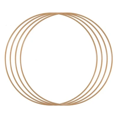WREATH RING: The metal hoop is optimal for crafting and creating a rustic, boho look; it is often used for macrame creations, floral wreaths, dream catchers and other crafts VERSATILE METAL RINGS: A must-have in your craft kit, this metal hoop can be customised using all sorts of craft materials including fabric, cotton string, ribbon, lace, craft wire and macrame cord METAL HOOPS FOR CRAFTING: Use this wreath ring to make various crafty ideas like dreamcatchers, a hanging plant pot, festive wreaths, floral arrangements, centrepieces, macrame wall hangings and more STURDY METAL RING: The ring is sturdy yet lightweight and is suitable for both beginning and experienced crafters; the antique gold coating has a shiny and luxurious finish SIZE: This pack contains 4 metal rings by Vaessen Creative, in the colour antique gold; the rings are made of 3 mm thick metal wire and have a diameter of approximately 11.8 inches (30 cm)