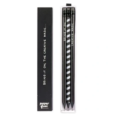 Set Ideal – Beautiful set of 3 fully black pencils from tip to eraser with motivational phrases in white that will make you want to start illustrating immediately Matching box – practical black pencil case that matches the signature black and white style of Paperfuel. The case contains a fabric label for easy removal of pencils MULTI-PURPOSE - Use the pencils to draw, write, sketch, practice hand lettering and calligraphy or make landscapes High quality – The pencils are made from high quality materials, making them strong and durable PERFECT GIFT - Suitable for children and adults, as well as beginners and advanced craft enthusiasts who want to start a creative hobby. The perfect gift for a family member or friend who loves drawing