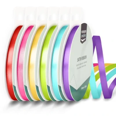 VERSATILE SATIN RIBBON - Add a touch of elegance to your gifts, decorations, and other creative projects with these double-sided satin ribbons in 6 beautiful rainbow colours DOUBLE-FACED AND GLOSSY - The doubled-sided, smooth, shiny satin offers a luxurious look and feel, perfect for personalising your creations in style. Its stitched edges give it a neat finish RIBBONS FOR CRAFTING - Vaessen Creative satin ribbons are available in many colours, widths, and lengths. The ribbons are available individually, but also in handy bundles for various themes HIGH QUALITY - Made from high-quality materials, this durable and double-sided satin ribbon won't fray when cut. The vibrant colours do not fade, but remain bright DIMENSIONS - This rainbow pack includes 6 satin ribbons in 6 colours: pink, aqua, purple, light green, yellow gold, poppy red. The ribbons measure 0.24" x 32.8 ft (6 mm x 10 m)
