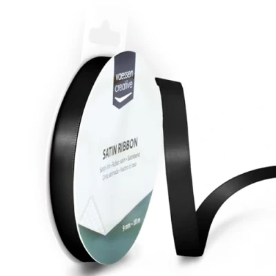Vaessen Creative Satin Ribbon, Black, 9mm x 10m, Elegant Shine for Card Making, Scrapbooks, Gift Wrapping and Other Craft Projects