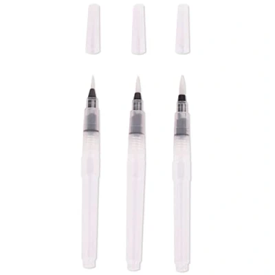 Water brush with tank - Each brush has a refillable water tank. Simply fill with water and store in the bag. Water can be dispensed drop by pressing the push button. Plenty of water - long press on push, little water - short press on push To go - The brushes are very easy to handle, they sit comfortably in the hand like a pen and are easy to transport. Thanks to the different bristle widths and shapes (3 x round), different techniques can be used and create great details Child-friendly - Ideal for use at school, at home or in nature. Boys can draw at any time without having to carry glass and water around MALUTENSILS - Expand your collection with this practical 2-in-1 tool. Especially suitable for painting on paper or canvas and with water-soluble paints such as watercolour paints or ink or for smudging watercolour markers Be creative - High quality synthetic brushes, perfect for sketching, drawing, hand lettering, scrapbooking, card making and many other paper crafts, Manufacturer: Vaessen Creative