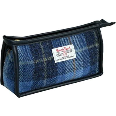 Vagabond Bags Harris Tweed Check Cosmetic Toiletry Bag, 16 cm, Mid Blue