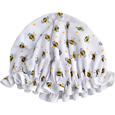 AmazonVagabond Buzzy Bees shower cap British made, packed and quality checked High quality fun cotton outer, fits all head sizes Waterproof lining 24cm x 22cm x 2cm when folded
