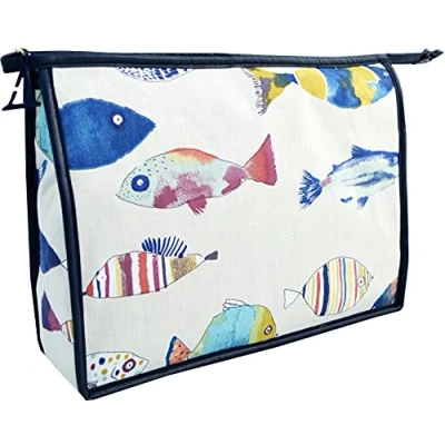 Fancy fish giant holdall washbag British made: manufactured in our UK factory to a high quality Waterproof faux leather lining and trim, big capacity, ideal travel toiletry bag 31 x 23 x 7cm with four internal pockets Matching products Available for a perfect travel set