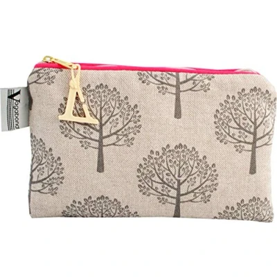Beautiful grey tree print on a linen mix with a pop of pink British made Manufactured in our UK factory to a high quality. Waterproof lining 18cm x 12.5cm x 1.5cm Matching products Available for a perfect travel set