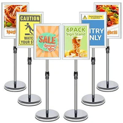 VAIIGO 6Pack Adjustable Sign Holder A4 Aluminum Poster Menu Stand Floor Standing Signage Display (Silver, 6Pack)