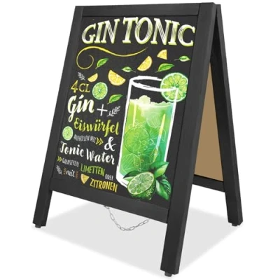 🔥Double-Sided Magnetic Chalkboard: VAIIGO A-frame chalkboard sign features a magnetic double-sided surface, allowing you to display menus, notes, photos, and promotions on both sides. Overall size: 43×65cm; writing surface: 36×48cm. 🔥Heavy Duty & Stable Construction:VAIIGO chalkboard signs is made of carbonized solid wood,sturdy and durable.Heavy-duty hinges help hold the chalkboard stably even in windy weather.Durable plastic slip-resistant feet that prevent it from tipping. 🔥Easy To Write And Erase:VAIIGO blackboard sign board has glossy writing surface makes it easy to create and change messages frequently,and can be easily cleaned with a wet cloth and board eraser without leaving stains. Suitable for both regular chalk and liquid chalk markers. 🔥Storage And Portability:VAIIGO chalkboard signs can be easily folded flat for easy storage and convenient transport.The free standing sandwich board Signs can be used anytime and anywhere without installation. 🔥Perfect For Pavement Signs:VAIIGO pavement board is for both indoor and outdoor use,and don't need to install.Great to use for menus or promotional messages outside your store,restaurant,pub,or cafe,wedding,birthday parties,or other special events and daily use. ⚠ SMALL SIZE – NOT A GIANT! OVERALL SIZE: 43×65CM (WRITING AREA: 36×48CM). Small floor-standing chalkboard for close-up use. PLEASE CHECK SIZE BEFORE ORDERING