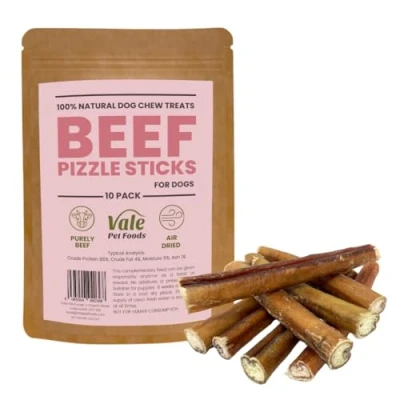 Vale Pet Food 10 Pack Beef Pizzle Bully Sticks for Dogs & Puppies 100% Natural Grain Free Long Lasting Great Dental Health