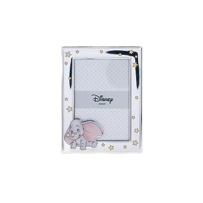 Silver photo frame to store the most beautiful photos of children and to keep among the accessories of the bedroom Photo size 9 x 13 cm. Painted wooden back and silver plate with Dumbo design Perfect as a gift idea for a baby registry, christening, birthday or as a children's room decoration Made in Italy with original Disney box