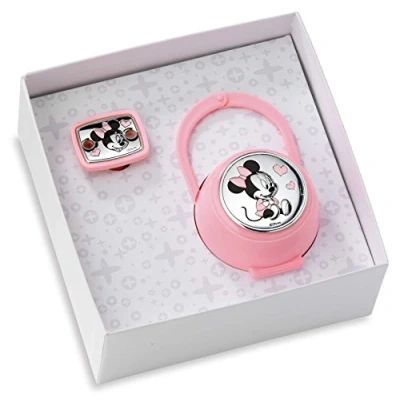 Dummy clip with chain + case with silver details for babies 3D Disney appliqu in silver with Minnie Mouse design for girls Includes Disney box, ideal for Christening, baby showers and layettes Original Disney product with Minnie Mouse design International products have separate terms, are sold from abroad and may differ from local products, including fit, age ratings, and language of product, labeling or instructions., Manufacturer: VALENTI & CO.