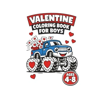 Valentine Coloring Book for Boys Ages 4 8: Trucks, Dinosaurs, Sports, Robots, Monsters, & More