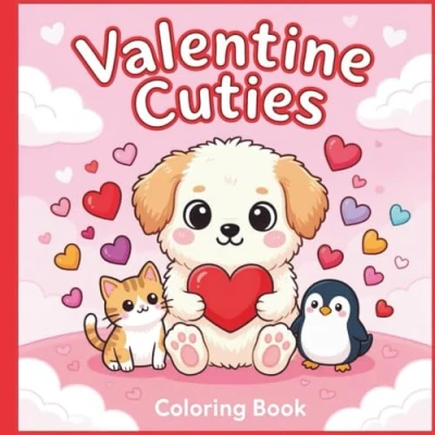 Valentine Cuties coloring Book: Cute and Cozy Baby Animals Book with Easy Bold Hygge Inspired Designs. 30 pages for kids adults.