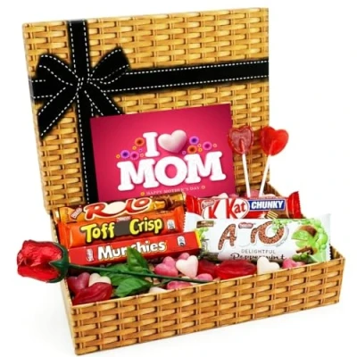 Mothers Day Gift Set – A ready-to-give love hamper packed in a wicker printed cardboard box, perfect for Mothers Day surprises. Assorted Chocolate & Sweet Treats – Includes a tasty variety of chocolate bars and love theme sweet goodies for sharing Beautiful Gift for Mum– wicker printed box with gift-style look that’s ideal for gifting, display, and re-use. Ideal for mom – Great for mothers, wives, girlfriends, anniversaries, birthday surprises.