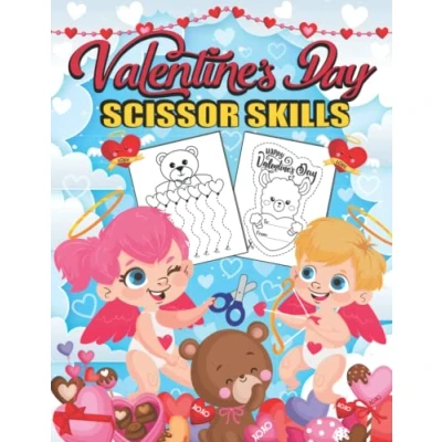 Valentine’s Day Scissor Skills: Cut and Paste Workbook for Kids Ages 3 5 Fun Activity Book Kids, Toddlers Preschoolers Coloring, Cutting Pasting Practice