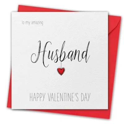 Valentines Card for Husband. Textured card. Eco friendly. 148mm Square. Valentine's with Red Envelope. Made in UK