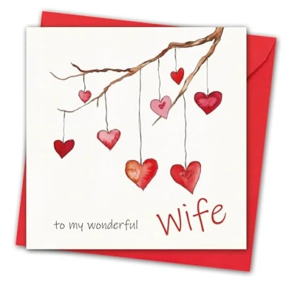 Valentines Card for Wife. Hearts Design. Eco friendly. 148mm Square. Valentine's with Red Envelope. Made in UK
