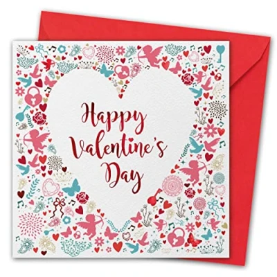 VALENTINE CARD - 150x150mm when folded. Card supplied folded and individually wrapped with red envelope. MADE IN THE UK – Designed, printed and packed in the UK, our cards are made from board which is manufactured in Europe. Cards have message on inside. PREMIUM QUALITY THICK textured card – 365 Microns sturdy card with luxury feel. Supplied with premium quality Red Diamond flap envelopes. POSTAGE - Each card and envelope weight 22g. 155x155x3mm (UK Postage: Letter) CARBON CAPTURE – We offset any CO2 emissions produced in the manufacture of our paper and board when purchasing by either planting woodlands right here in the UK or by preserving high conservation value forests.