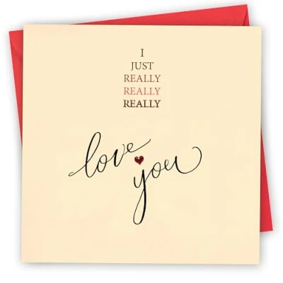 Valentines Card. I really love you Design with Red Foil 4pp 150x150mm Size. Valentine's Card Envelope. Verse Inside. Printed and Packed in UK.