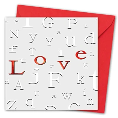 Valentines Card. Love Letterblock Design with Red foil. Eco friendly. 4pp 150x150mm size. Valentine's Card Envelope. Verse inside. Printed and Packed in UK.