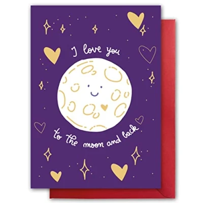 Valentines Card. Love you to moon and back Design. Eco friendly. A5 size. Valentine's Card with Red Envelope. Verse inside. Printed Packed in UK.