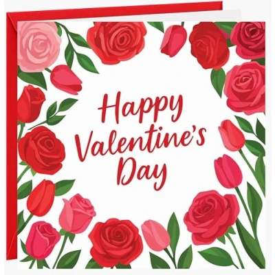 Valentines Day Card For Her Romantic Flowers Red Roses Valentine's Cards Wife Girlfriend