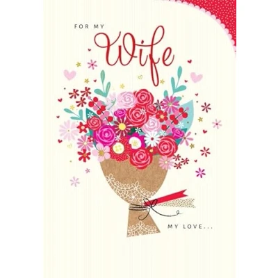 A High Quality Greeting Card and Envelope From Piccadilly Greetings Designed and made in the UK - supporting British jobs Caption: Wife Description: Bouquet Approximate size: 9 x 6 inches