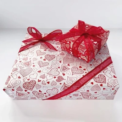 Valentines wrapping paper With Ribbon. 4 XL Sheets (50 x 70cm). Red/White Hearts twin pack. Ideal for Anniversary, Wedding, Birthday, Valentines, Wife or Girlfriend. 3 metres of Red