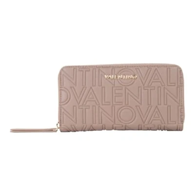 DESIGN — Elegant taupe wallet with a modern embossed logo pattern, making it a stylish accessory for any occasion. ORGANISATION — Features 16 card slots, 2 side compartments, 2 slip pockets, 2 bill compartments, and a zipped coin pocket for optimal organisation. CLOSURE — Secure zip-around closure ensures your valuables are safely stored and easily accessible at all times. MATERIAL — Crafted in leather-look polyurethane exterior and polyester interior for durability and a refined appearance. GIFT READY — Comes with original VALENTINO tag and is presented in a VALENTINO gift box, perfect for gifting.