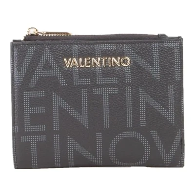 ELEGANT DESIGN — This Valentino wallet features a sophisticated logo pattern combined with high-quality gold-coloured accents, making it a stylish and reliable accessory for your everyday financial organisation needs. OPTIMISED STORAGE — The wallet offers a generous interior layout, including 11 slots for credit and business cards, 6 side compartments, a banknote section, and a secure zipped pocket for your loose change. COMPACT CONVENIENCE — Designed in a practical landscape format with dimensions of approximately 13 x 10 x 2 cm, this lightweight accessory fits perfectly into almost any handbag for daily use. PREMIUM MATERIALS — Crafted with a refined grained texture using durable polyurethane on the exterior and smooth polyester on the inside, ensuring both a luxurious look and long-lasting quality. SECURE CLOSURE — The wallet is equipped with a high-quality press stud closure, keeping all your valuables safely stored and ensuring that you can access your essentials quickly at the checkout.